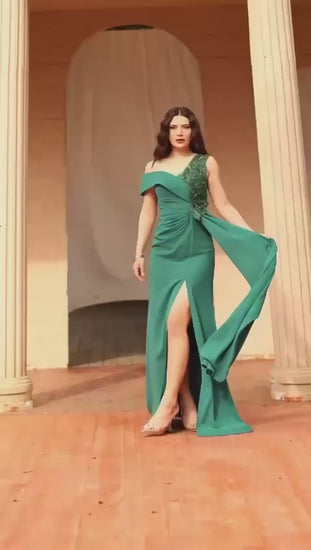 Make a captivating entrance in the Siren Elegance Gown a one-shoulder, floor-length statement piece designed for women who command the room. This dress features an asymmetrical neckline, figure-hugging silhouette, and elegant draping that cascades into a thigh-high slit for just the right amount of drama. Delicate textural embellishments across the bodice add depth and luxury, perfect for galas, evening events, and special occasions. Crafted with precision tailoring and a smooth finish, this gown offers both style and comfort, ensuring you feel as powerful as you look.