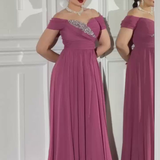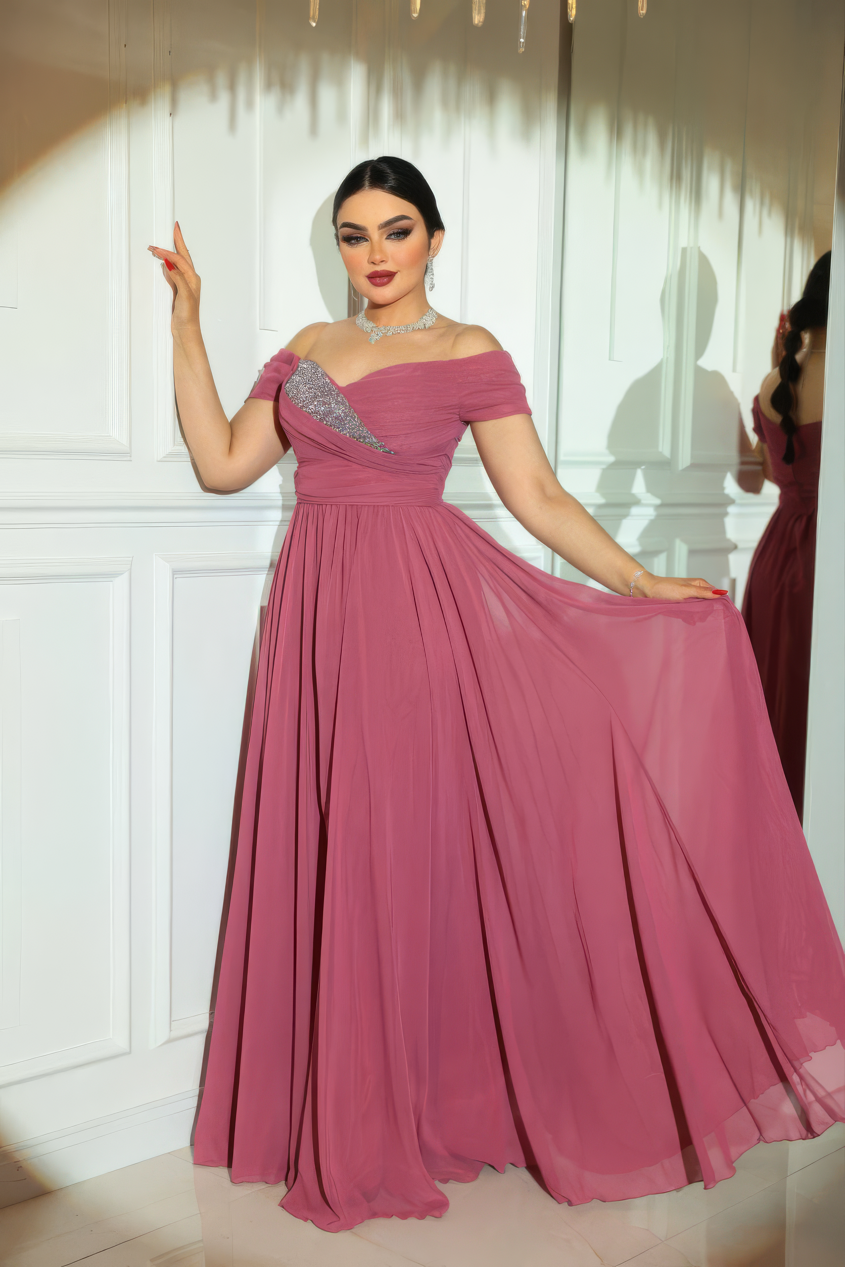 Elegant off-shoulder A-line gown with crystal embellishment on the sweetheart bodice. The flowing skirt and ruched bodice create a flattering silhouette perfect for special occasions. This elegant and sophisticated evening dress features a flattering trumpet silhouette with a sweetheart design. Crafted from premium organza, this stunning piece is perfect for wedding guest and formal events. The sophisticated styling and quality construction ensure an elegant look that will make you feel confident and beautiful.