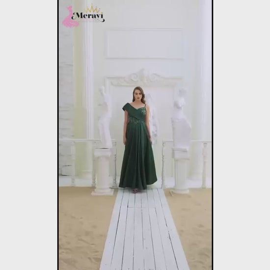 Command the room in the Venus Hour Gown, a timeless A-line evening dress that blends sculptural elegance with feminine grace. Featuring a folded off-the-shoulder neckline and delicate embroidered lace along the bodice, this gown is a romantic nod to classical beauty. The full satin skirt cascades beautifully from the waist, offering movement and drama with every step. Available in rich emerald and bold red.